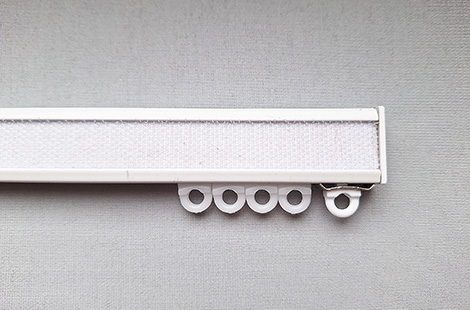 - В стандартной комплектации на погонный метр профиля расчитывается по 10 крючков и бегунков.